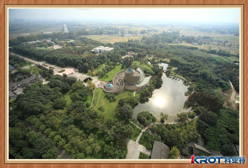 三星堆博物館占地面積約33公頃,綠化面積達(dá)80%以上,館區(qū)內(nèi)環(huán)境優(yōu)美、布局動靜得宜,曲徑敞道,垂柳依依、古蜀奇葩、湖光島影無處不體現(xiàn)了人文與自然完美結(jié)合、飄逸自然、渾然天成的川西園林特色。博物館主體建筑外形追求與地貌、史跡及文物造型藝術(shù)相結(jié)合的神韻,融原始意味和現(xiàn)代氣息為一體。一展館建筑為半弧形斜坡生態(tài)式建筑,張揚人與自然和諧共生的人文精神,二展館建筑為三部一體的變形螺旋式建筑,其整體具有“堆列三星”與“人類歷史演進(jìn)歷程”的雙重象征,館外還有氣勢灰宏的仿古祭祀臺和供現(xiàn)代文體活動的大型表演場與展館建筑遙相呼應(yīng),表達(dá)了三星堆文化蒼古雄渾、博大精深的歷史意蘊。